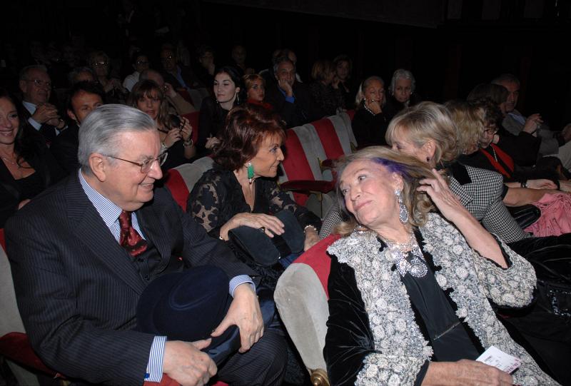 Seduti in platea, tra gli altri, anche Marta Marzotto, Irene Pivetti, lo stilista Fausto Sarli, l'amico di sempre Luciano De Crescenzo e Maria Scicolone.